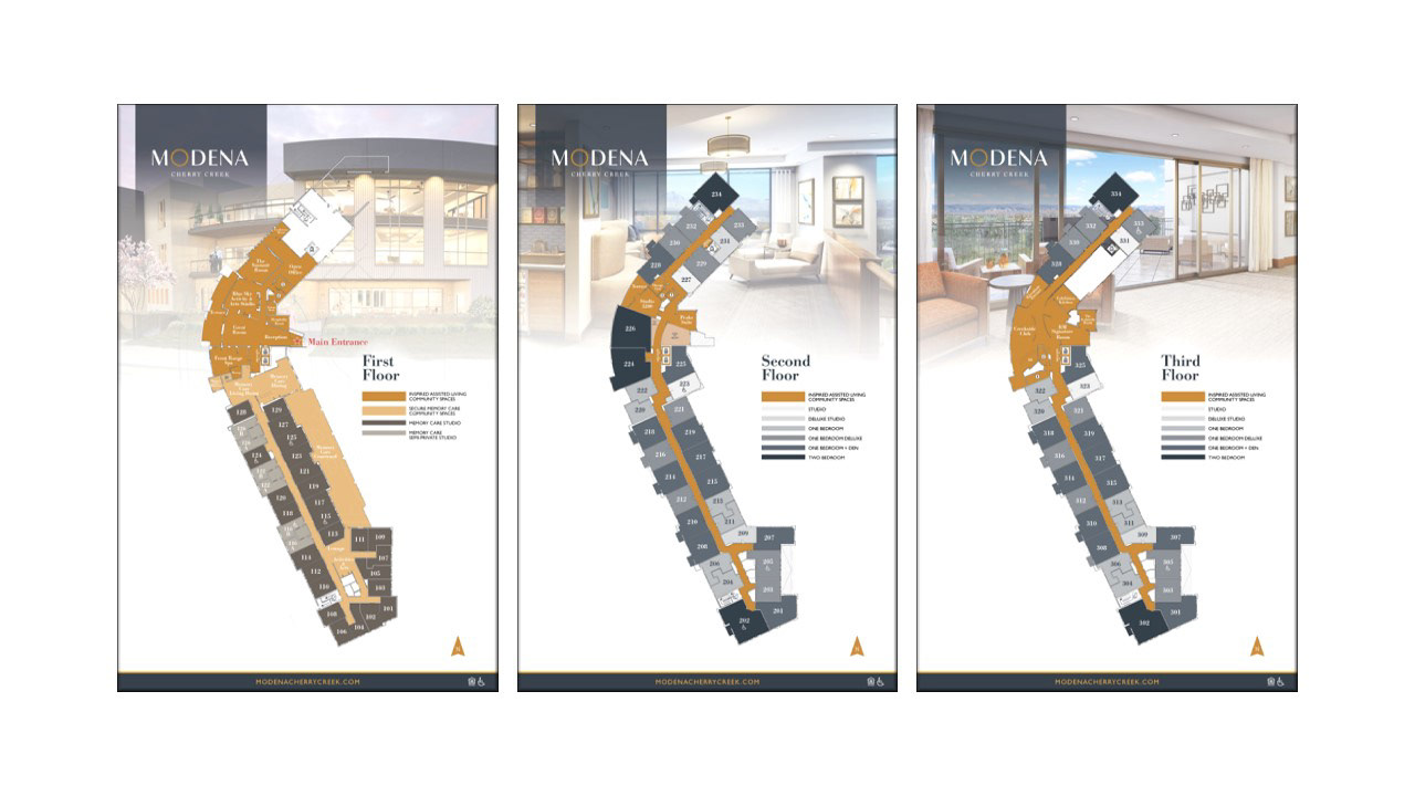 Modena Senior Living Building Foorpints - Discovery Room Wall Displays